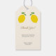 Uma etiqueta de presente de agradecimento com duas ilustrações de limões amarelos, textos cinza e marrom personalizáveis: perfeito para agradecer seus convidados em um casamento, aniversário, chá de bebê, etc. Você também pode usá-lo para seus produtos à base de limão!