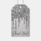 Tema de festa e chá da escrita de caligrafia brilhante "Obrigado" numa platina feminina e na garoa de pintura de cromo de diamante prateado num fundo de padrão de degelo. A partir da coleção "Iching", esta textura feminina apresenta um lodo metálico falso com uma cintura brilhante iridescente que é perfeita para qualquer evento ou para o dia a dia. Para outras cores ou produtos correspondentes, entre em contato com o designer.