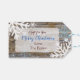 Adicione seus nomes a este Feliz Natal, Um presente para você com etiqueta de presente com padrão de madeira curtida rústica e flocos de neve brancos. Adicione um toque de charme aos seus presentes com esta persona festiva adorável mentiu a etiqueta de presente.