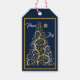 As Etiquetas de Presente de Natal Douradas do Marinho de Joy da Paz apresentam um detalhado design de árvore de Natal com texto na moda branco com as palavras "paz" e "alegria". Essas etiquetas de presentes de na moda são personalizáveis para que você possa adicionar seu próprio texto ou mensagem a seu favor. Personalize-o ainda mais escolhendo outro fio colorido.