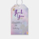 Adicione um toque mágico final aos seus brindes de festa com estas etiquetas encantadoras! Este design apresenta o mesmo fundo cor-de-rosa e roxo caprichoso com uma silhueta delicada de fada e acentos cintilantes. Estas etiquetas são uma maneira perfeita de agradecer aos convidados por celebrarem e são projetadas para combinar perfeitamente com nosso Convite de Aniversário Fada e Cartões de Agradecimento para criar um conjunto de festa coeso.