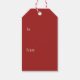 Design personalizado bonito com uma ilustração adorável de um cachorro-cachorrinho Yorkshire Terrier em um chapéu de Papai Noel sob uma árvore de Natal iluminada, incluindo texto vermelho e verde com as palavras "Feliz Natal" em tipografia moderna. As palavras "Para" e "De" estão no verso em texto branco sobre um fundo vermelho de coordenação.