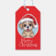 “A cute, happy puppy wearing a fluffy red Santa hat, sitting sweetly beside a big ‘Merry Christmas’ message. With bright holiday colors and an adorable expression, this cheerful little pup adds a cozy, festive touch to the gift tag.”