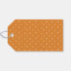 Design de tipografia moderna e moderna, tipo laranja ousado JOYFUL, etiquetas de presentes de Natal. A parte traseira das etiquetas apresenta um padrão de ponto de rabisco giro na coordenação do plano de fundo de cor laranja da tendência. espaços de modelo para mensagem e nome.