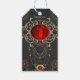 Momentos de ouro do amor. O design exala uma elegância sombria que imediatamente chama a atenção. Apresenta um motivo circular central com um fundo vermelho profundo que cria uma atmosfera apaixonada e romântica. No meio do círculo estão as silhuetas de uma noiva e um noivo segurando balões em forma de coração - um símbolo de amor e alegria. Dentro do círculo, o texto "Sr & Sra" é estampado em uma fonte elegante, celebrando a conexão do casal e a vida juntos. O círculo é emoldurado por adornos dourados delicados que adicionam um toque de luxo ao design. Esses detalhes ornamentados atraem o olhar e criam uma aura opulenta.