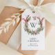 Monograma elegante Feriado Feriado Feriado de Natal Tags de presente apresenta uma bela coroa vermelha e verde de verde de inverno com uma amora vermelha festiva.
