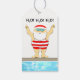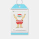 Etiquetas engraçadas de presentes de Natal com Papais noeis nadadores e linhas criativas.