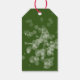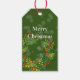 Uma coroa de Natal e neve turva sobre fundo verde.
