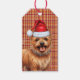 Uma etiqueta de presente de xadrez vermelha e dourada coordena-se com o nosso embrulho de presente e fita para dar uma olhada completa no presente de Natal do amante do cão Terrier australiano.
