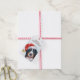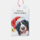 Bonitas etiquetas de presentes de férias com uma imagem de aquarela de um Cão de Montanha Bernese festivo com um chapéu santa. Saudação/mensagem na frente é personalizável. A parte traseira da etiqueta está na forma de azul claro e é personalizável com um nome/família.