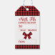 Etiquetas de Natal para entrega do Polo Norte. Etiquetas de presentes de Natal para entrega do Polo Norte com padrão de xadrez de búfalos preto vermelho.