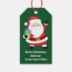 Etiqueta de presente de Papai Noel verde personalizada para os presentes de Natal dos seus filhos. Personalize os presentes de férias dos seus filhos de e para com o seu nome personalizado sob o sorriso de Papa Noel em seu terno vermelho alegre.