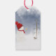 Bonito boneco de neve com estrela de ouro de Natal para pinheiro velho na floresta de inverno e flocos de neve.