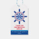 Um na moda e uma etiqueta de presente única de dois lados imprimiu sobre o tema de viajar pelo mundo por mar. Uma âncora azul escura contra o fundo de um capacete azul escuro ou volante. Ambos estão estilizados como se fossem objetos 3d. Dois textos modelo personalizáveis de cor vermelha rodam o leme. Você pode alterá-los ou excluí-los independentemente. São as seguintes: "QUALQUER TEXTO AQUI OU SUPRIMIR ESTE TEXTO", na parte superior, "NEW YORK * 40°40'04"N 74°02'26"W * ESTADOS UNIDOS", na parte inferior. O terceiro texto "USNYC" é o código do porto marítimo internacional e está localizado na parte inferior da âncora. Mais dois textos de modelo na frente, uma imagem de modelo para ser alterada para o seu logotipo e um texto de modelo no verso. Design totalmente personalizável. Você pode mudar todos os textos independentemente, e você pode mudar as duas imagens na frente e no verso. Use o botão "Editar Design" ou "Personalizar" (conforme o caso) da cor azul para acessar a "Ferramenta do Designer", onde você pode alterar tudo, inclusive a fonte, a cor do plano de fundo, etc. Você pode transferir este design para vários outros produtos. Seja criativo, personalizado e comprar um, aprecie e seja feliz!