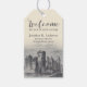 Faça um impacto com esta elegante etiqueta de presente, perfeita como complemento final de uma garrafa de champanhe, vinho ou outro presente de aquecimento da casa para o novo dono da casa. A frente apresenta uma gravura antiga do Castelo de Rouen medieval abaixo da palavra 'Bem-vindo' em um script de cinza de carvão na moda. Personalize com seu nome, nome da empresa ou mensagem pessoal usando os modelos fáceis fornecidos. O verso tem as palavras 'Home Sweet Home' no mesmo script elegante e mais outra modelo para adicionar mais texto. Se desejar, exclua esta caixa de texto e use o verso como um lugar para afixar seu cartão de visita. Os corretores podem usar essas etiquetas para adicionar uma elegante impressão final ou eles fariam uma bela gravata de presente para qualquer um que acolhesse alguém a uma nova casa ou vizinhança.
