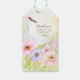 Esta etiqueta de agradecimento apresenta uma aquarela pintada à mão de um gracioso grou-trombeteiro aninhado entre anêmonas suaves rosa, violeta e pêssego. Simbolizando devoção e novos começos, o design floral romântico adiciona um toque final adorável a festas de noivado ou embalagens de presentes.