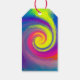 Um obrigado de casamento que você pega. Psicodélico e legal. Um abstrato brilhante e colorido turbilhão de cores. Um caleidoscópio de cores que está girando em volta para um redemoinho espiral. Cores vivas e brilhantes do arco-íris, como amarelo, rosa, roxo e azul. O fundo é um verde limão sólido com seus detalhes de casamento em preto. Preparado para personalizar esta etiqueta de presente com suas próprias informações.