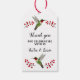 Linda etiqueta de presente "Obrigado por celebrar conosco" personalizável, apresentando beija-flores de garganta rubi pintados à mão em aquarela e bagas vermelhas.
