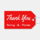 Adicione estilo aos seus presentes e pacotes com obrigado personalizado que você marcar. Estas marcas doces e simples de obrigado que você oferece apresentam um obrigado que você saúda em uma fonte de script branco em negrito com seus nomes realçados contra um fundo vermelho vibrante. A parte traseira da etiqueta apresenta o mesmo obrigado que você saúda. Você pode personalizar facilmente essas etiquetas de presentes com os nomes da noiva e do noivo, o nome da família ou até mesmo um nome comercial. Você também pode alterar a cor de fundo dessa marca para atender às suas necessidades. Personalizado Obrigado As etiquetas de presentes são excelente para..... * Casamento / chás de panela * Empresas * Fundraisers, eventos de caridade, almoços * Presentes - aniversários, agricultura doméstica, etc * Anexar aos favoritos para festas e receber NOTA: Role até o final da página para ver produtos que combinam - adesivos, convites, postais, cartões de nota, etiquetas de endereço e selos postais