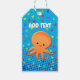 Um polvo de desenho laranja giro. Etiquetas decorativas para bebês animais. Editar texto para personalizar estas marcas. Vazio atrás para mensagens escritas à mão. Ideia de presente para crianças.