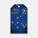 Etiqueta de presente de Natal azul, nota de Natal alegre, ouro, renas, estrelas e terras tornam esta design única e elegante. Aproveite esta design para seus presentes para amigos e familiares.