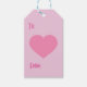 Esta etiqueta de presente apresenta um solteiro de grande coração cor-de-rosa de um lado e um padrão de repetição de corações cor-de-rosa no outro. Excelente de presentes e favores em um chá de menina, batismo de menina ou aniversário de menina.