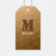 Etiqueta Para Presente Padrão geométrico castanho de malha monograma