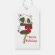 Panda adorável no bambu com um grande laço festivo vermelho e texto "Feliz Natal"