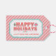 Esta etiqueta de Natal apresenta uma design alegre com o texto que diz "Felizes Feriados." Você pode personalizar com seu nome na parte inferior. No verso há outro padrão de stripe diagonal vermelho e rosa.