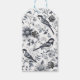 Esta etiqueta de presente é adorada com um charmoso design de madeira de inspiração francesa, que mostra pássaros magníficos em matizes de cinza carvões em meio a folhagem em cinzas e preto.