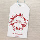 Uma bonito coroa de pássaros e rosas por um pouco de estilo minimalista escandinavo. Vermelho sobre um fundo branco. Altere a mensagem, o nome da família e a data para personalizar. Perfeito para uma festa de Natal, festa ou evento.