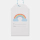Uma etiqueta de presente com um arco-íris pastel bonito e suas duas nuvens azuis e textos personalizáveis para adicionar a um presente de aniversário ou a um obrigado que você apresenta!