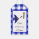 Um padrão elegante de gingham azul com um desenho animado de peixe azul e um balão de folha de ouro número 1. Se quiser um número de balão diferente. Por favor, escreva uma mensagem na Caixa de Chat no Zazzle.