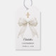 Adicione um toque final elegante à celebração da sua Confirmação com essas etiquetas de lembrança personalizadas redondas, apresentando um laço marfim refinado com detalhes de pérola e uma cruz dourada sutil.
