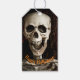 Divertidas etiquetas de presente de Halloween apresentam uma foto ligeiramente assustadora e meio engraçada de um esqueleto risonho com texto personalizável