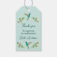 Bonito e personalizável etiqueta de presente "Obrigado por apoiar a minha pequena empresa" que inclui galhos botânicos com cores aquáticas pintadas à mão e beija-flores rufas. O texto pode ser alterado e o estilo e o tamanho da fonte podem ser alterados clicando em "Editar design".