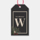 Esta design é simples, mas faz uma declaração, com seu monograma inicial em branco cremoso em um fundo preto macio. Um quadro branco cremoso é decorado com um buquê rústico de pinheiros, natas brancas e vermelhas, e folhas sagradas. Esta etiqueta de presente de Natal compartilha o seu feriado e alegria de Natal com convidados num estilo belo e subestimado. Criado pela imprensa simplesmente de farmácia.
