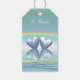 Marcar o presente com meu trabalho de arte único de dois corações de platina flutuando na água sob um arco-íris. O texto personalizável diz "70 Anos" na frente e "Para, De" na parte de trás.