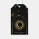 Uma etiqueta de presente personalizada, mística e celestial, que inclui um quadro de arco com o céu da meia-noite galáxia, poeira estelar, lua crescida e outros símbolos astrológicos em cores pretas e ouros e uma citação escrita de "obrigado por celebrar conosco". Este produto é facilmente editável. Se precisar de ajuda para a personalização deste produto ou se precisar de mais produtos correspondentes para esta coleção, envie-me gentilmente o Zazzle.