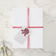 Etiqueta de presente branca simples com poinsettia vermelha com 'sombra' verde, fio vermelho.