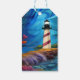 Linda cobertura vermelha e branca listrada em um entorno rochoso cercado por flores e água azul/céu AI Arte criada por minx267