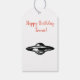 desenho de prato voador OVNI. Personalize seu texto em uma etiqueta de presente especial.