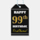 Etiqueta Para Presente Preto, Faux Dourado 99º Aniversário + Nome Persona