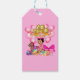 Ilustração de uma adorável menina vestida de rosa, com cabelo em pães com arcos rosa e princesa tiara. Cercado por brinquedos e com balões cor-de-rosa e dourados acima com estrelas e faixa lua. Bonito presente para esperar pais, chás de fraldas, revelação de gênero ou presente de aniversário de bebês.