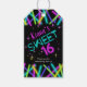 Um padrão de pulseiras e bastões luminosos espalhados em uma variedade de cores neon brilhantes adiciona um elemento divertido a este design de etiqueta de presente para Sweet Sixteen. Adicione um nome e uma mensagem personalizados usando o modelo fornecido. Procure ID760 para ver o convite e outros suprimentos para festa que combinam com este design colorido.