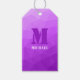 Padrão geométrico do ombro roxo com etiquetas de presentes monogramas. Monograma Personalizar presente para com seu nome e inicial personalizados. Ofertas de empacotamento para qualquer um. Gradiente roxo ombre com padrão geométrico design moderno de malha.