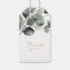 Elevem seus favores de presentes ou de casamento com esta elegante etiqueta de presente com uma linda faixa de cor d'água eucalipto e folhas verdes exuberantes. A delicada ilustração botânica enquadra a mensagem "Obrigado" em estilo natural e gracioso, misturando sotaques de folhagem com um toque de charme inspirado em jardim. Mole de detalhes verdes e refinados de aquarela criam um aspecto bonito e sofisticado que complementa perfeitamente casamentos elegantes, eventos de verão, ou gestos simplesmente pensativos. Ideal para celebrações de temas naturais ou encontros clássicos, subestimados, esta etiqueta combina simplicidade com elegância botânica oferecendo uma forma na moda de expressar gratidão sincera. Seu layout mínimo garante que o trabalho de arte verde se destaque, fazer cada presente ou favorece memorável e especial em sua beleza natural, romântica.