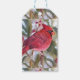 Belo Cardeal Vermelho com sotaques pretos, empoleirados em um galho holandês castanho verde e folheado coberto de neve cercado de frutas vermelhas