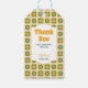 Flor de margarida verde e amarela retro na caixa de verificação, obrigado sua etiqueta de presente.