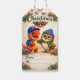 Festive Christmas gift features our favourite duo all bundled up for the snow surrounded by holiday greenery and winter berries with Rex in his signature cap and hoot in a cozy neat Benny and scarf. This design brings a touch of prehistoric charm to your holiday wrapping the vintage style Merry Christmas lettering and convenient too and from lines make it the perfect finishing touch for present presents under the tree spread some Jurassic joy this holiday season with Rex and hoot.